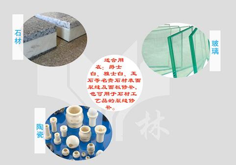 可用于石材与石材、石材与玻璃的复合、石材工业中用来补强、填补具有多孔及表面的裂纹、小孔洞、砂眼、蚂蚁路以及凸凹不平的多种天然石材和混凝土、提高表面质量、也可用于玻璃纱网加强易碎石板,提高成品率。