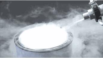 液氮(Liquid nitrogen),化学式为N2,是一种惰性,无色,无臭,无腐蚀性,不可燃,温度极低的液体。液氮汽化时大量吸热接触造成冻伤。在常压下,液氮温度为-196℃,人体皮肤直接接触液氮瞬间是没有问题的,超过2秒才会冻伤且不可逆转。