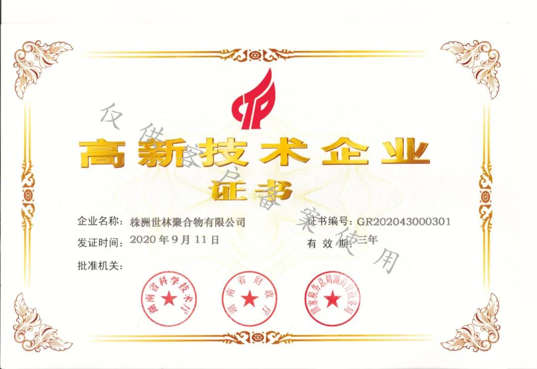 - 资讯大全 - 祝贺株洲世林聚合物有限公司获得“高新技术企业”