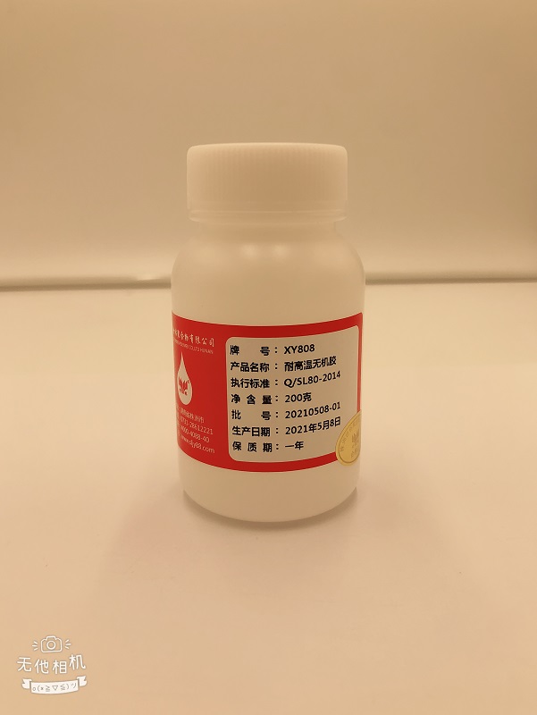XY808耐高温无机胶有一定的胶接强度和密封作用,直接刮涂和二次维修均十分方便。主要用于耐高温部件的密封和定位,其工作温度从-40~+800℃,短时可达+1000℃。