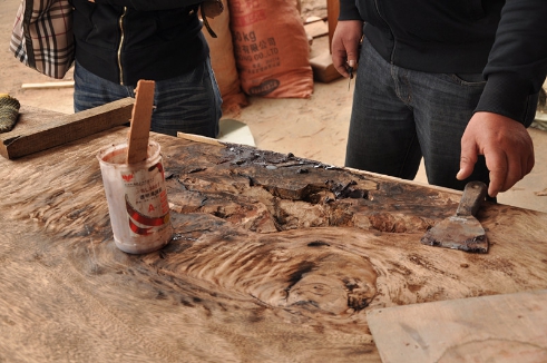 在进行原木修补时,可以选择适用于冬季的木材快干修补胶,缩短工期。例如牌号为SL3601K和SL3602的快干型透明裂缝修补胶,其初固时间短,光泽度较好、硬度高,填隙能力强,胶接层的尺寸稳定性良好,收缩率不高,操作方便; 耐磨、耐老化,防水性能较好,适用于各种木材的修补。
