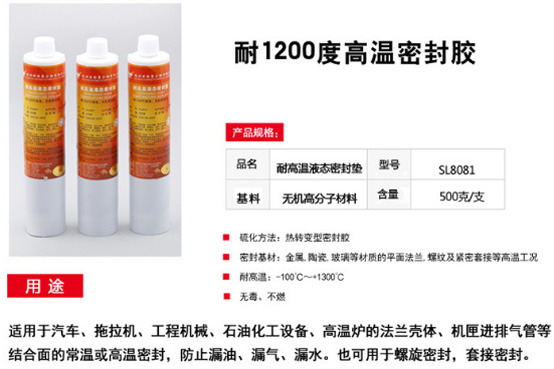 株洲世林聚合物有限公司有一款SL8081高温密封垫(密封胶)其工作温度从-100℃~+1200℃,短时能耐+1300℃。其性能与英SQ2高温密封剂相当。它具有优异的耐超高温、阻燃、耐老化、耐酸碱等性能;满足一般胶粘剂无法解决的高温设备的密封、填补、灌封、修补和胶接等难题