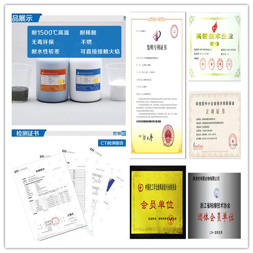 株洲世林胶业就是一家致力于液态胶粘研发、生产、销售、服务为一体的专业公司,生产的SL8304耐1500℃无机高温胶,是一种需要高温固化的双组份胶粘剂,具有阻燃、耐温性好、固化后耐水、有一定的胶接强度和密封作用,使用方便。主要用于耐高温部件的密封和胶接(初固),其工作温度从-40~+1500℃。 短时可达+1600℃。不仅应用于电加热管灌封,还用于耐高温陶瓷、灯头、金属密封槽等高温部件的胶结(初固)及密封。也用在冶炼行业高温炉体、溢流槽、引流槽等作为修补管壁来使用。