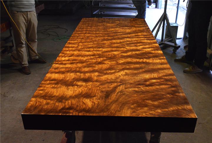 实木大板,是近几年渐趋流行的一种商业和办公家具,它主要由外国进口的较为名贵的百年老木做成。这些木头口径较大,一般少在2000px以上上,从中切出一片10-375px厚的大板,就是实木大板。可用于做办公桌、大班台、主管桌、会议桌以及办公电脑桌等。主要的材质有巴西花梨、非洲楠木、非洲鸡翅木、缅甸金丝柚木、非洲红花梨、非洲黄花梨、非洲奥坎花梨等。实木大板在成型之前的木材是有许多无规则的裂缝、虫洞的,但我们买到的实木大板看不到这些裂缝,这是怎么弄的呢?