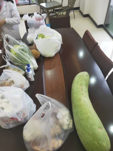 冒雨领取,自觉有序世林胶业领取的防疫物资世林员工相互帮助,小刘提供给大家的新鲜蔬菜郑妈妈奉献瓜果,张美女、卜帅哥帮大家集中采购生活物资